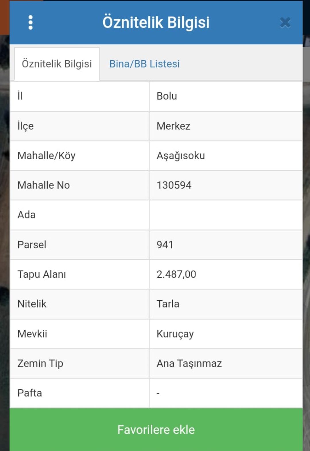 Bolu Merkez Aşağısoku Mahallesi Kuruçay mevkiinde bulunan, toplam 2.487 m² tapulu tarla içerisinde 207 m² hisse satılıktır.