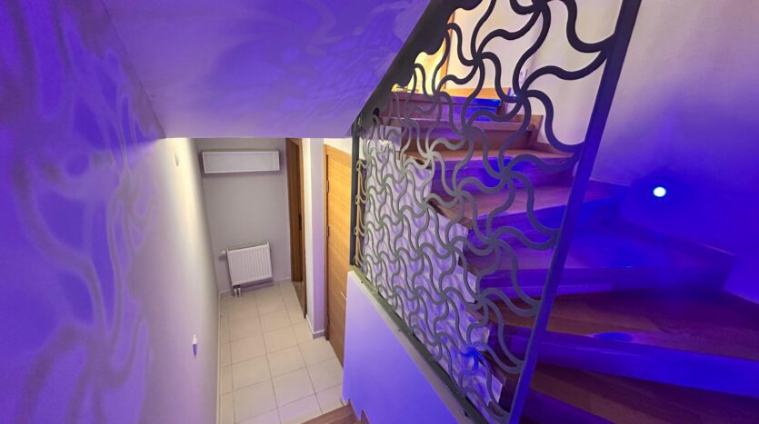 210 m² net kullanım alanına sahip olan 4+1 villa, teknoloji ve konforu bir araya getirir.